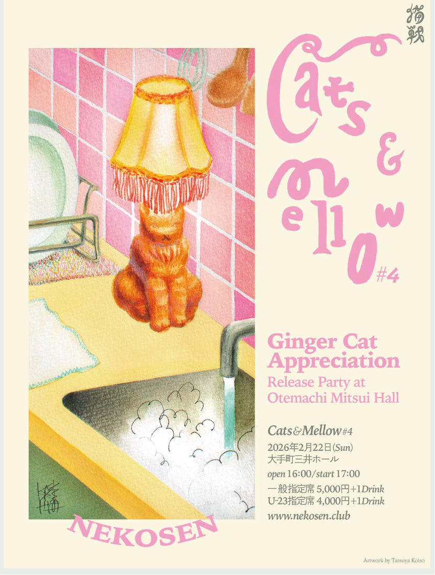 画家/デザイナー、小磯竜也氏による"Cats & Mellow"のポスター